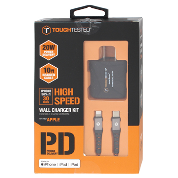 Tough Tested PD Wall Charger/Cable Kit 10FT Apple to USB-C