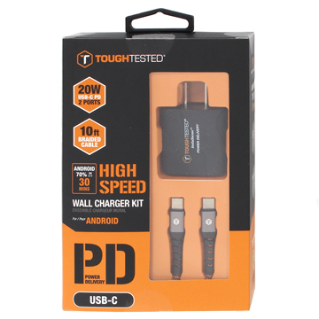 Tough Tested PD Wall Charger/Cable Kit 10FT USB-C to USB-C